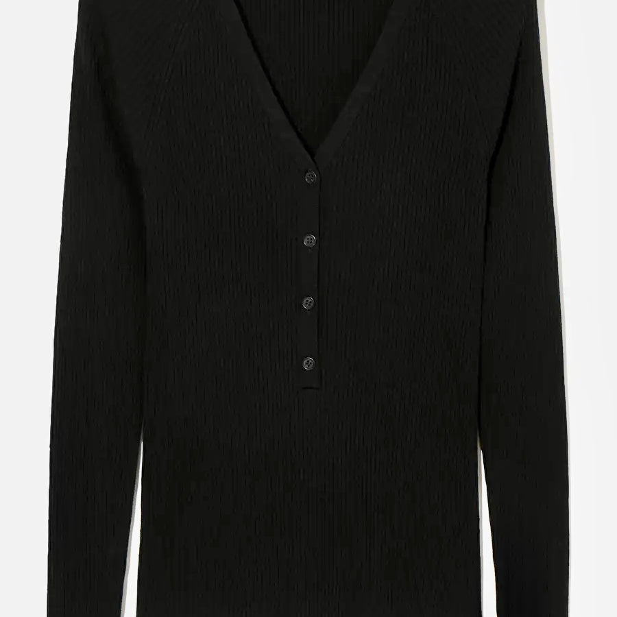 Top COS de lana acanalado con cuello en pico